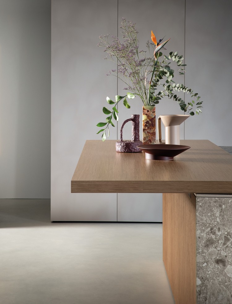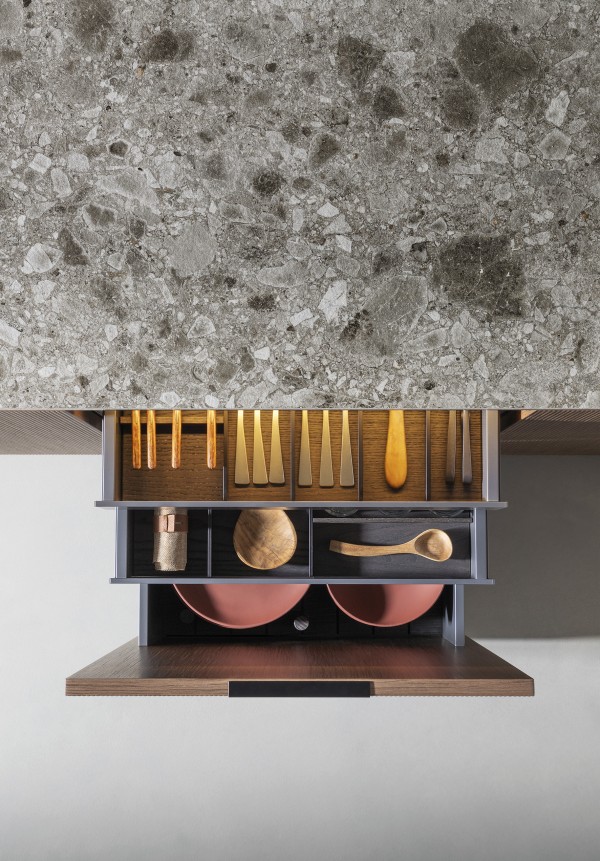 WORK Plan de travail Work avec évier intégré de forte épaisseur (ép.220 mm) en MDI iseo gris bouchardé