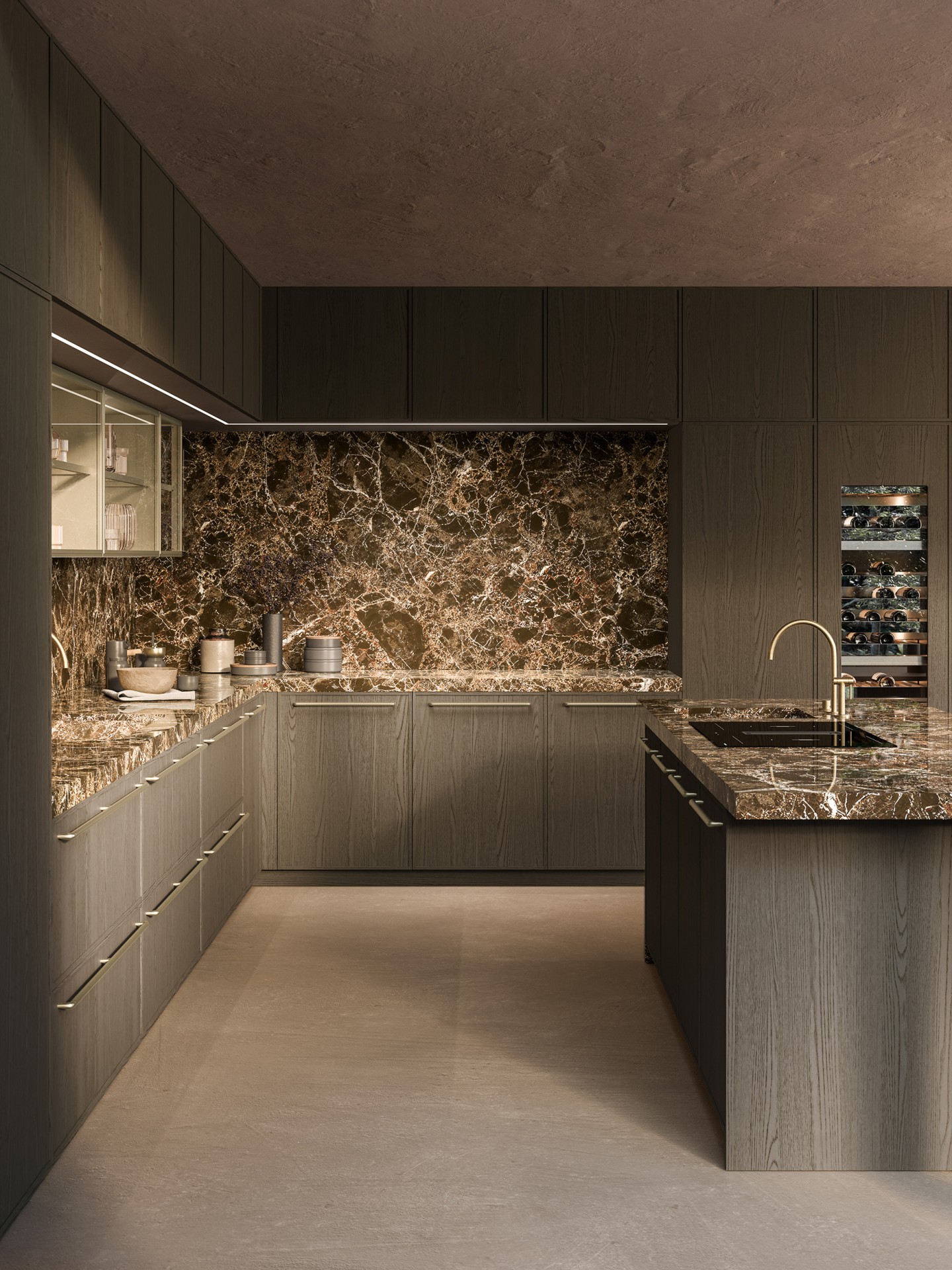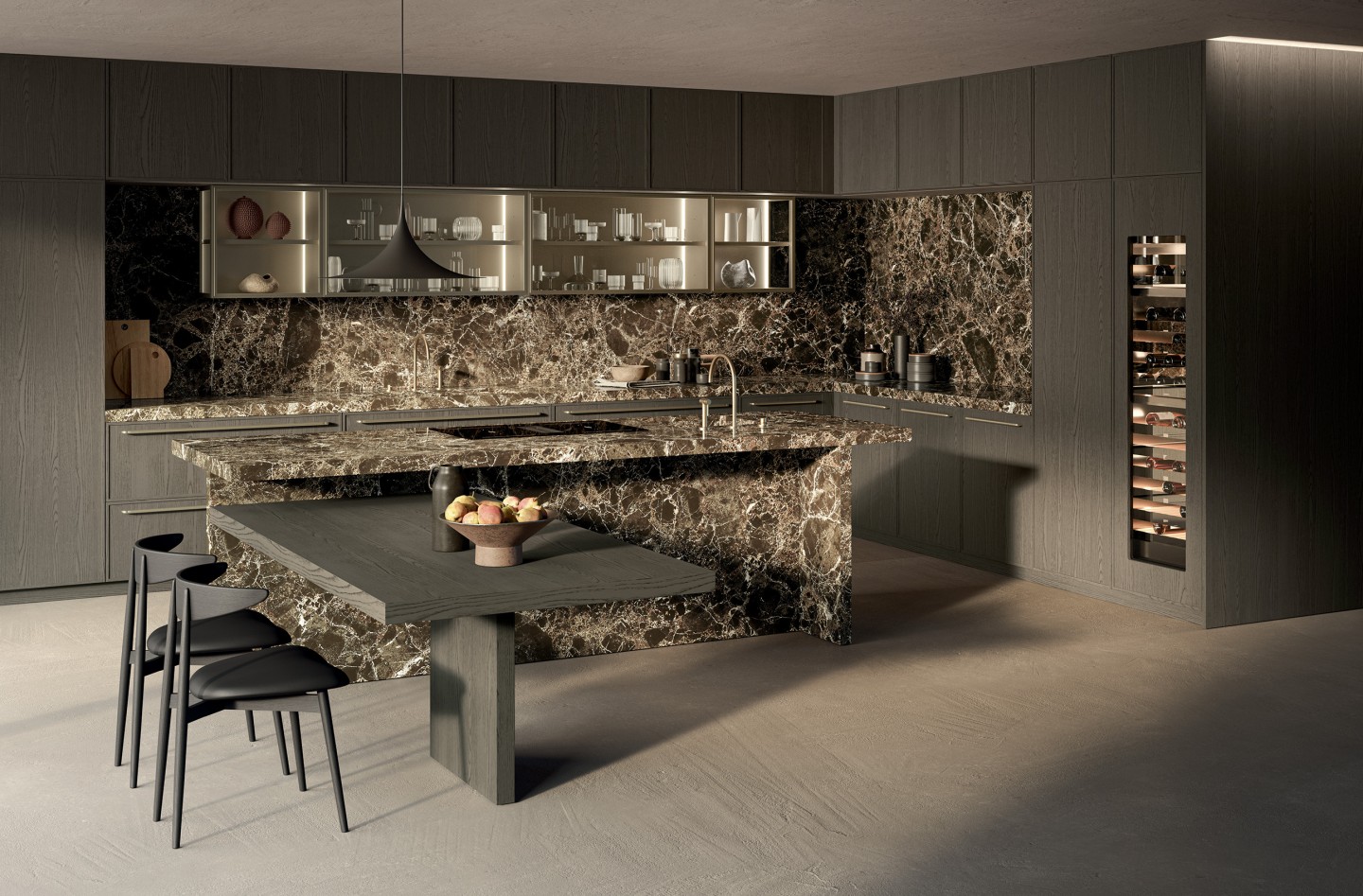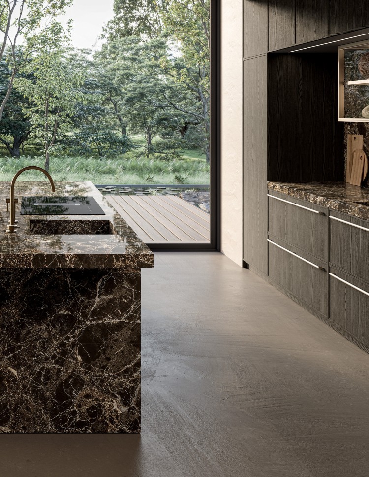 plan de travail ép.60 mm en pierre naturelle polie marmo Emperador.