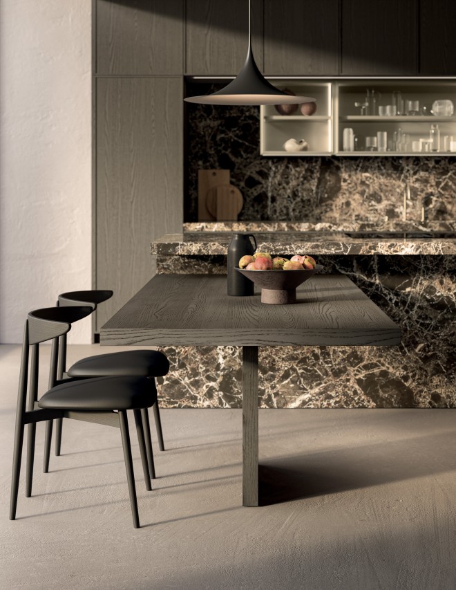 Plan snack en saillie plaqué chêne sablé Piombo ép.60 mm