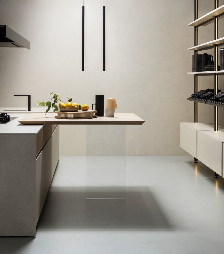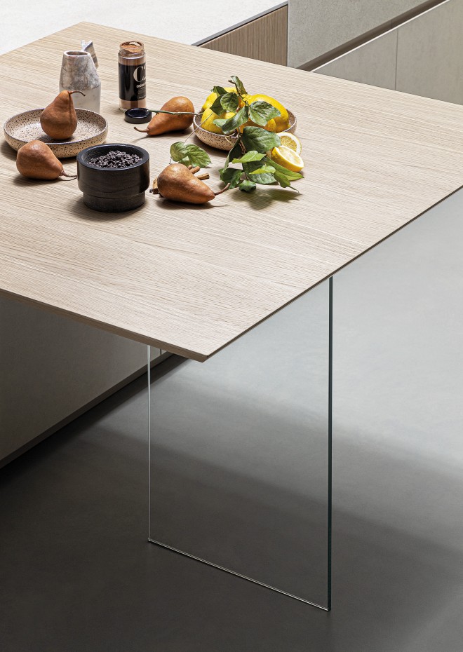 Pied « Leggera », pour plateau de table et plateau snack, en verre trempé extra-clair, épaisseur 1,2 cm, L.45 cm fixé au plateau par une solide équerre métallique peinte en noir.